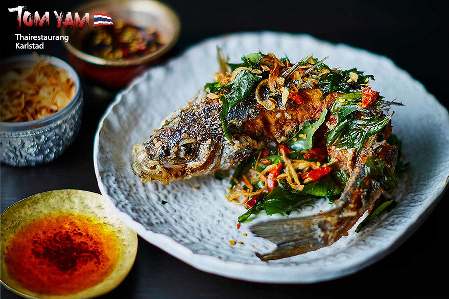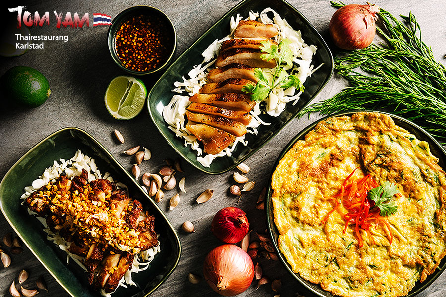 Friterade thaiköttbullar, kyckling och tigerräkor. Serveras med sweetchilisås, sojasås, chilisås och ris.