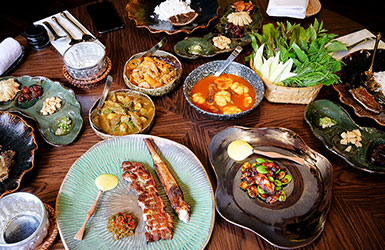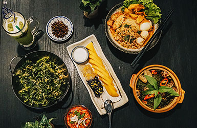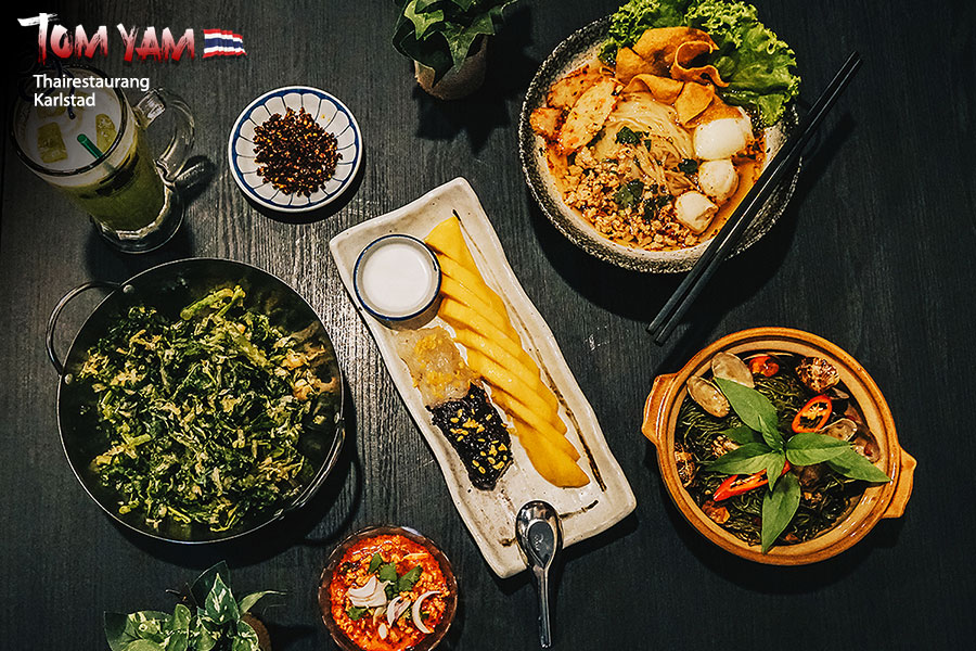 Välj mellan kyckling eller mixed seafood (bläckfisk, musslor och tigerräkor) Kryddstark syrlig soppa med kokosmjölk, champinjoner, lime, lök, tomater, citrongräs, limeblad, galanga, chili och koriander. Serveras med ris.